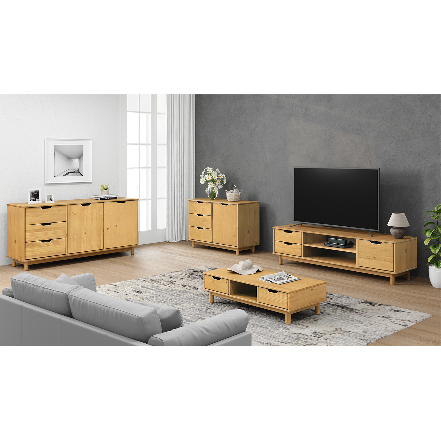 Kód produktu: 32431BMateriál je masiv borovice voskovaná v medovém odstínu. Součástí jsou tři zásuvky s kovovými pojezdy, dvě dvířka a jedna police.