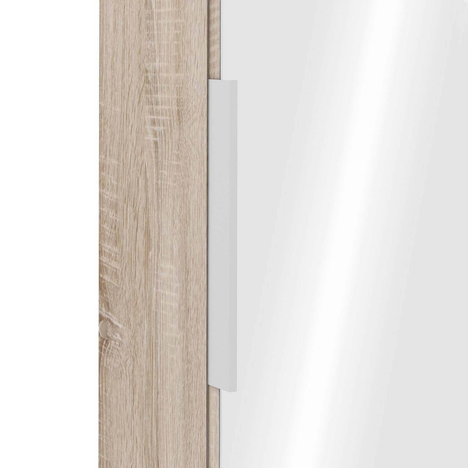 Moderní botník uloží velké množství obuvi a bude se hodit do předsíně s nábytkem v provedení dub Sonoma. Botník se zrcadlem 305097 má zrcadlo v rozměru 50 × 173 cm, dveře jsou vybaveny kovovou úchytkou a jejich montáž je možná na levou i pravou stranu. Do botníku se vejde až 12 párů v 6 úrovních.