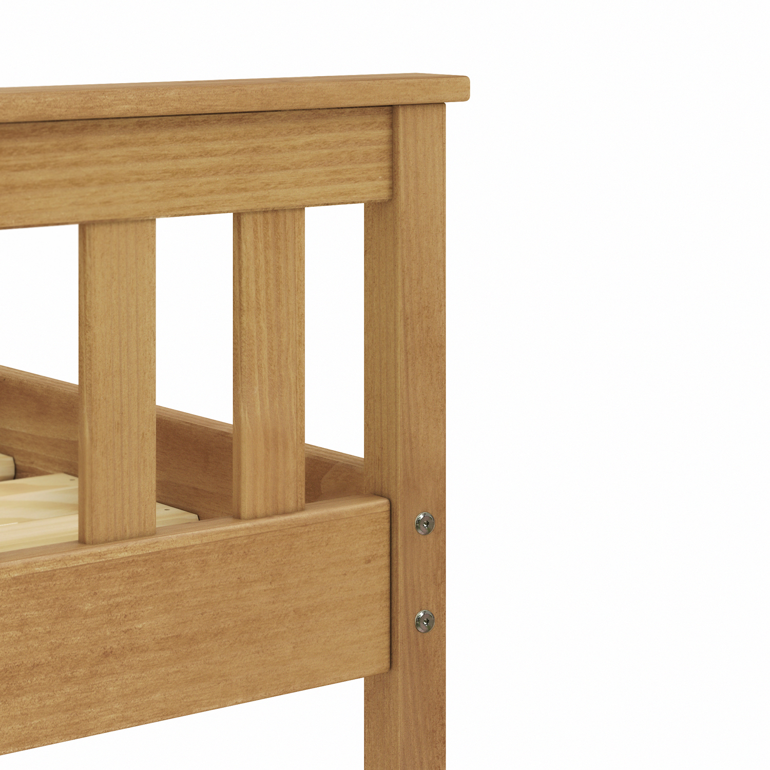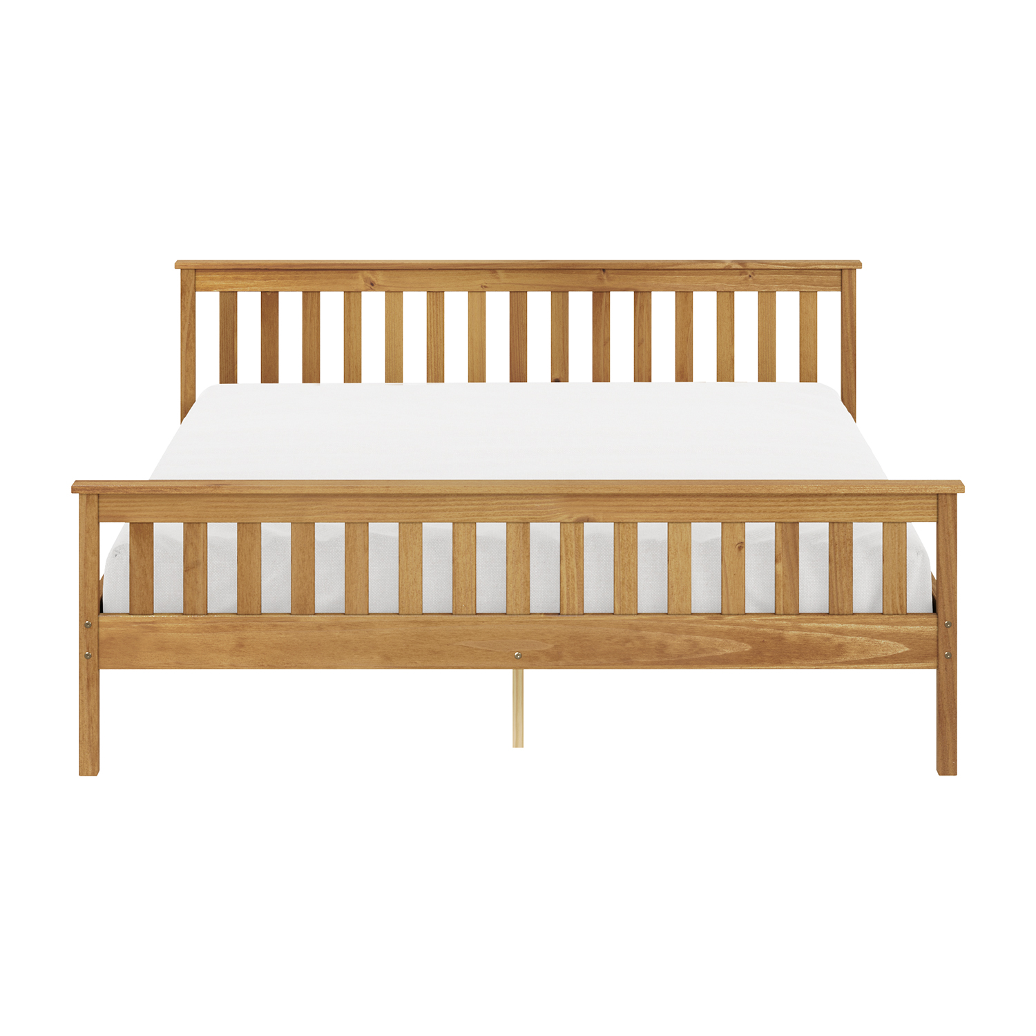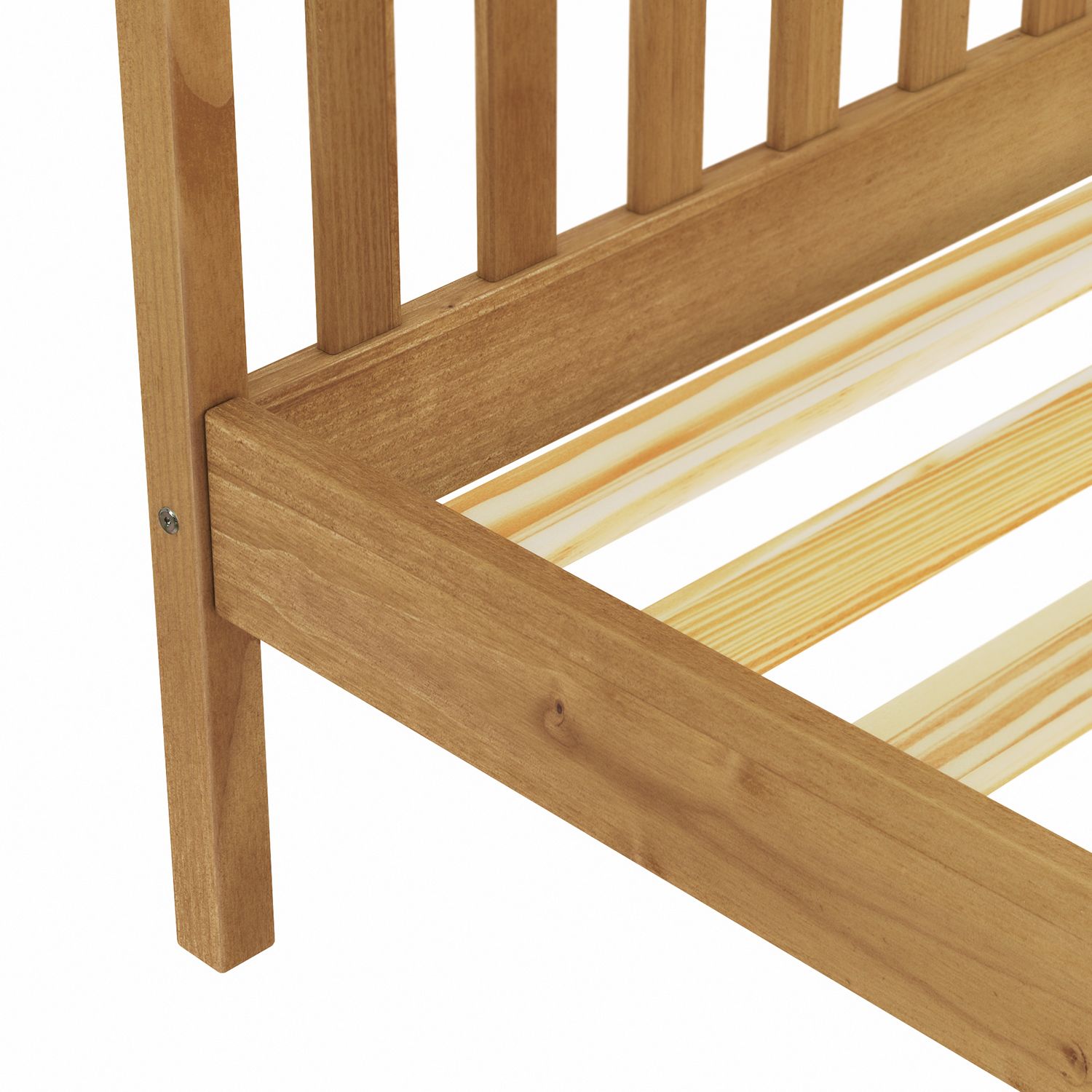 Kód produktu: 8072VMateriálem postele je masiv borovice s voskovaným medovým odstínem. Má čelo vysoké 80 cm a sed o výšce 38 cm, přičemž cena nezahrnuje rošt a matraci. Doporučuje se minimální výška matrace 15 cm a doporučený rozměr matrace je 90 × 200 cm spolu s roštem R1. Postel má doporučenou nosnost až do 120 kg.