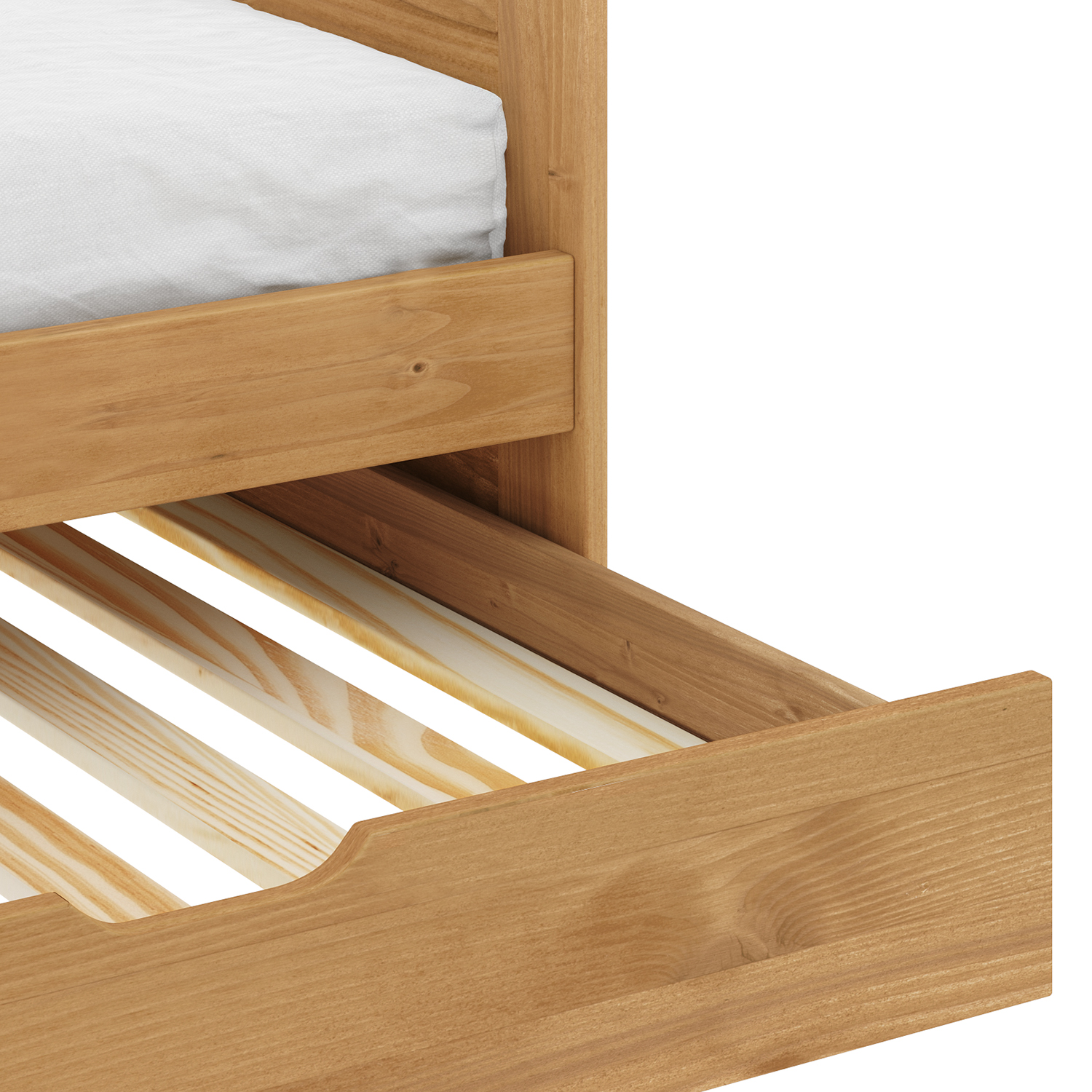 Kód produktu: 8863VMateriál je masiv borovice s voskovaným povrchem. V ceně jsou zahrnuty praktické úložné prostory pod postelí (3 zásuvky). Cena zahrnuje rošt (dřevěný laťkový), ale matrace není součástí nabídky. Doporučený rozměr matrace je 90 × 200 cm (M2, M5, M9, M12, M24, M26). Výsuv lze využít jako úložný prostor nebo jako přistýlku. Pro přistýlku se doporučuje matrace o výšce 10 cm.