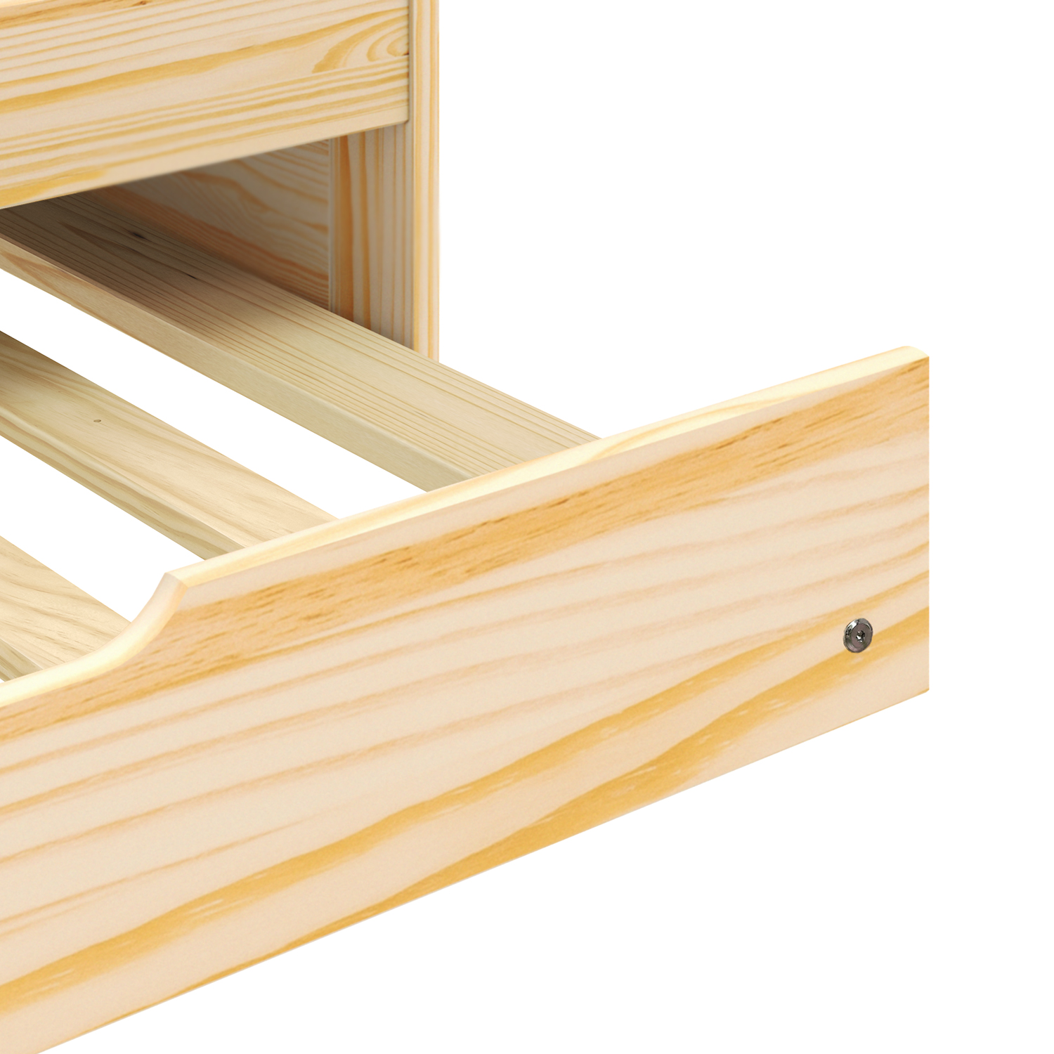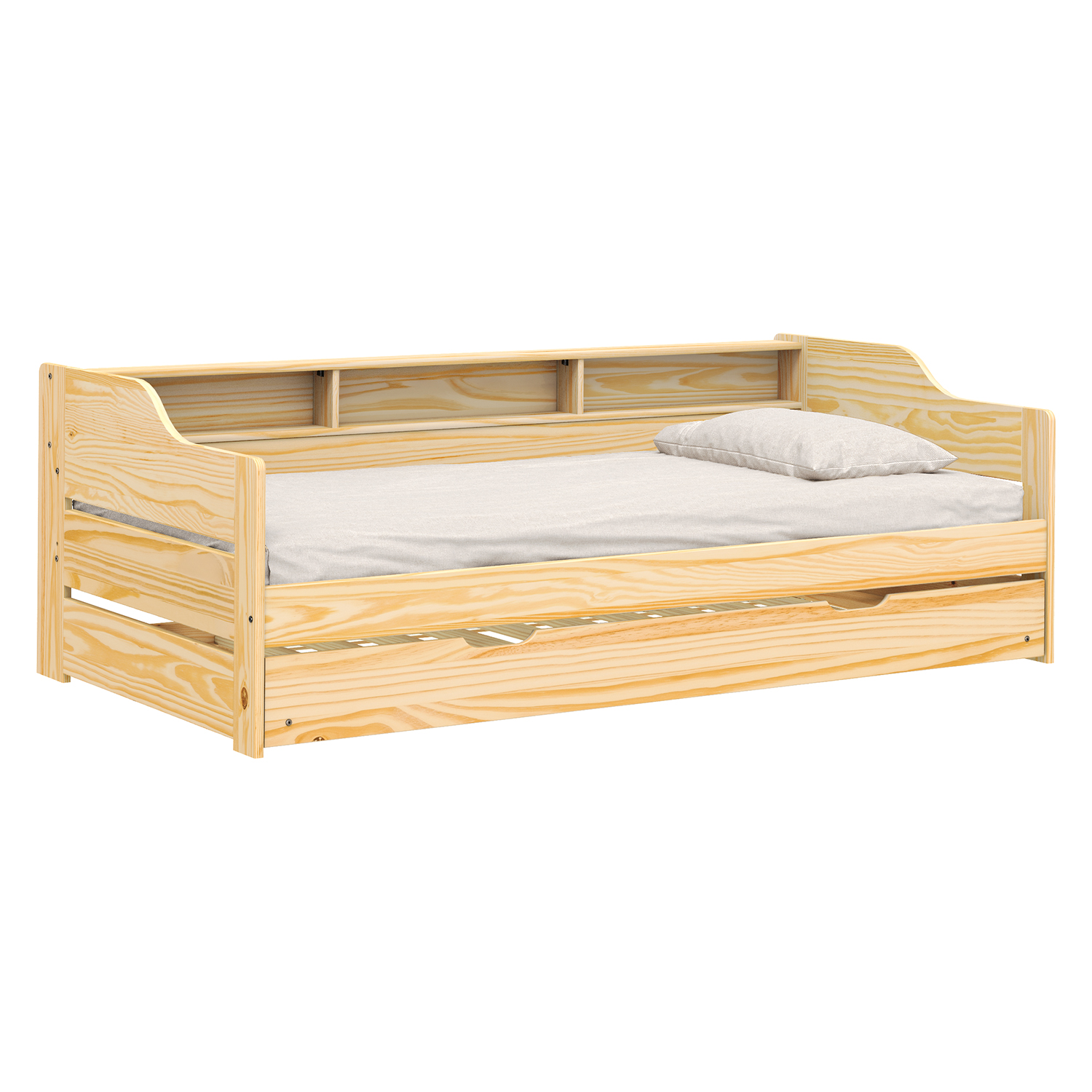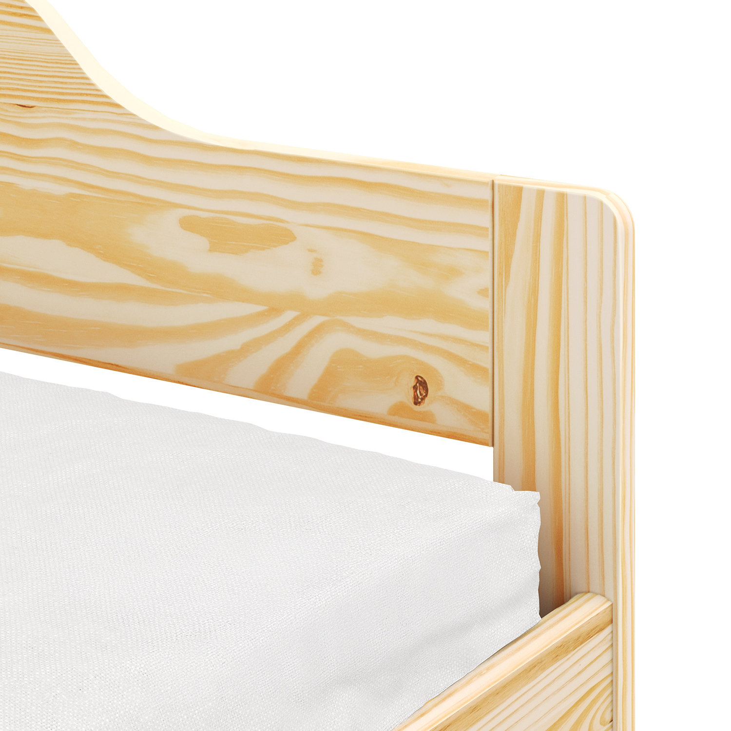 Postel je vyrobena z materiálu masiv borovice v lakovaném provedení. V zadní části se nachází otevřená police a v dolní části výsuvná přistýlka. Cena zahrnuje rošty (dřevěné laťkové), matrace nejsou v ceně. Doporučený rozměr matrací je 90 × 200 cm.