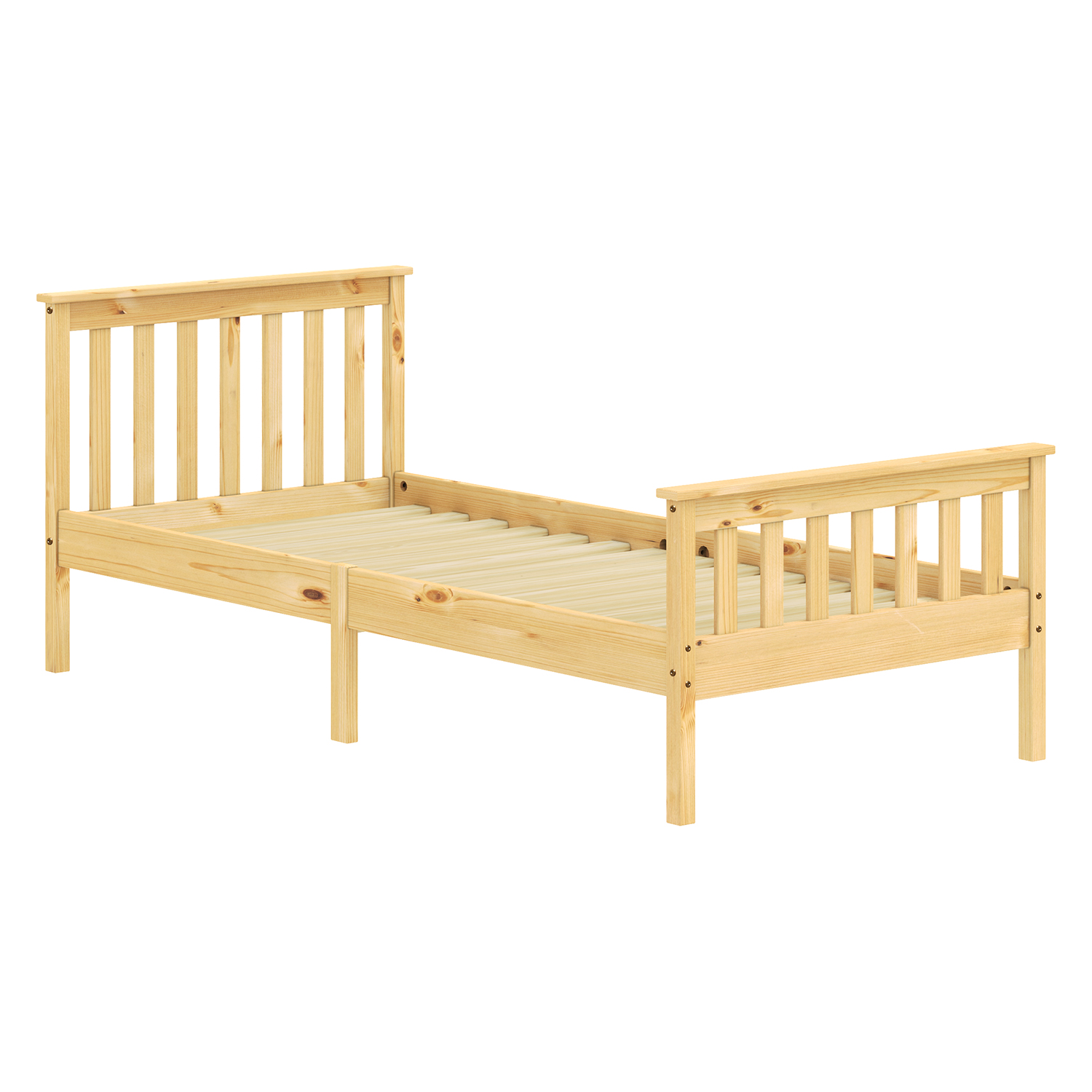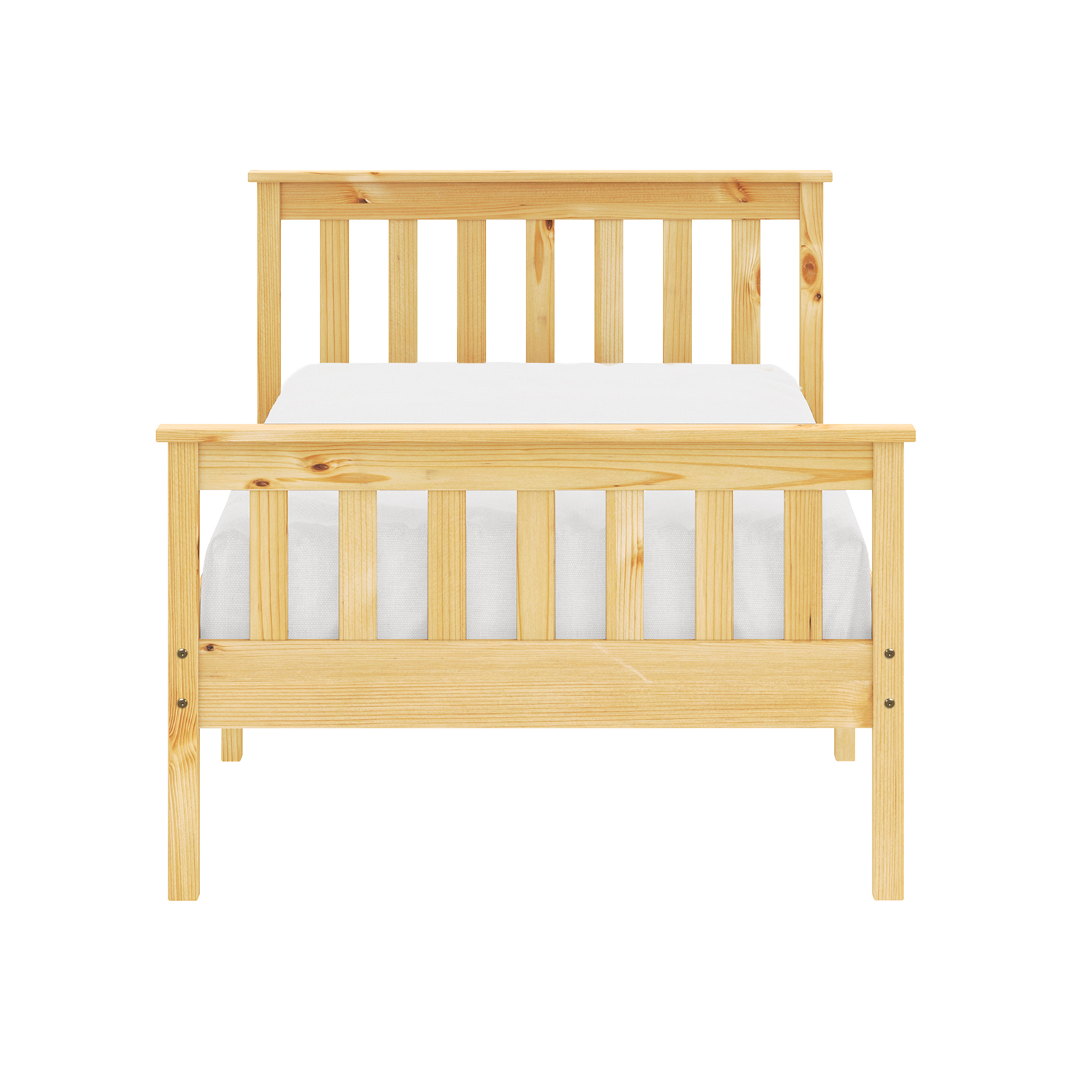 Postel je vyrobena z materiálu masiv borovice v lakovaném provedení, cena je včetně roštu (dřevěný laťkový) bez matrace a doporučený rozměr matrace je 90 × 200 cm.