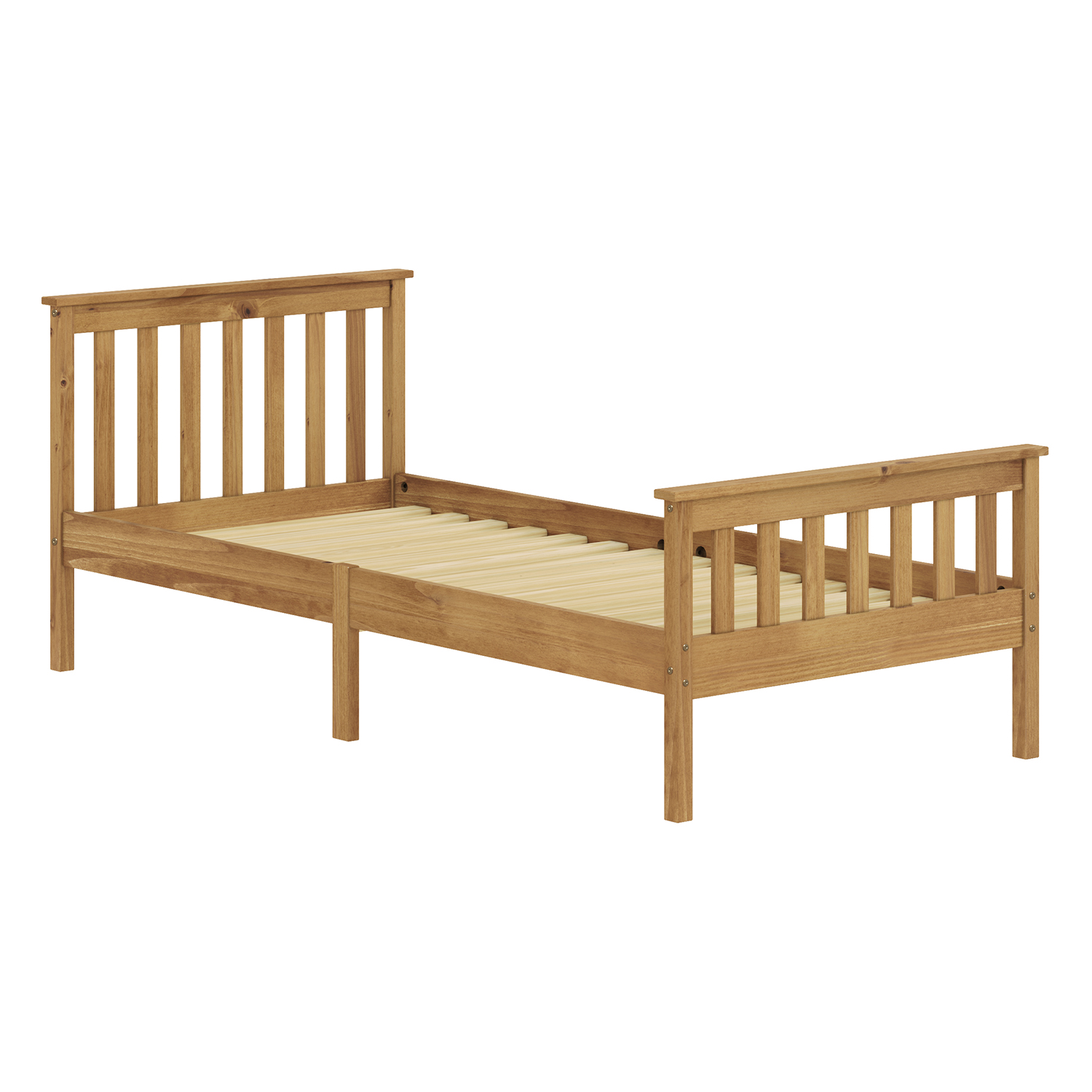 Postel je vyrobena z materiálu masiv borovice ve voskovaném provedení, cena je včetně roštu (dřevěný laťkový) bez matrace a doporučený rozměr matrace je 90 × 200 cm.