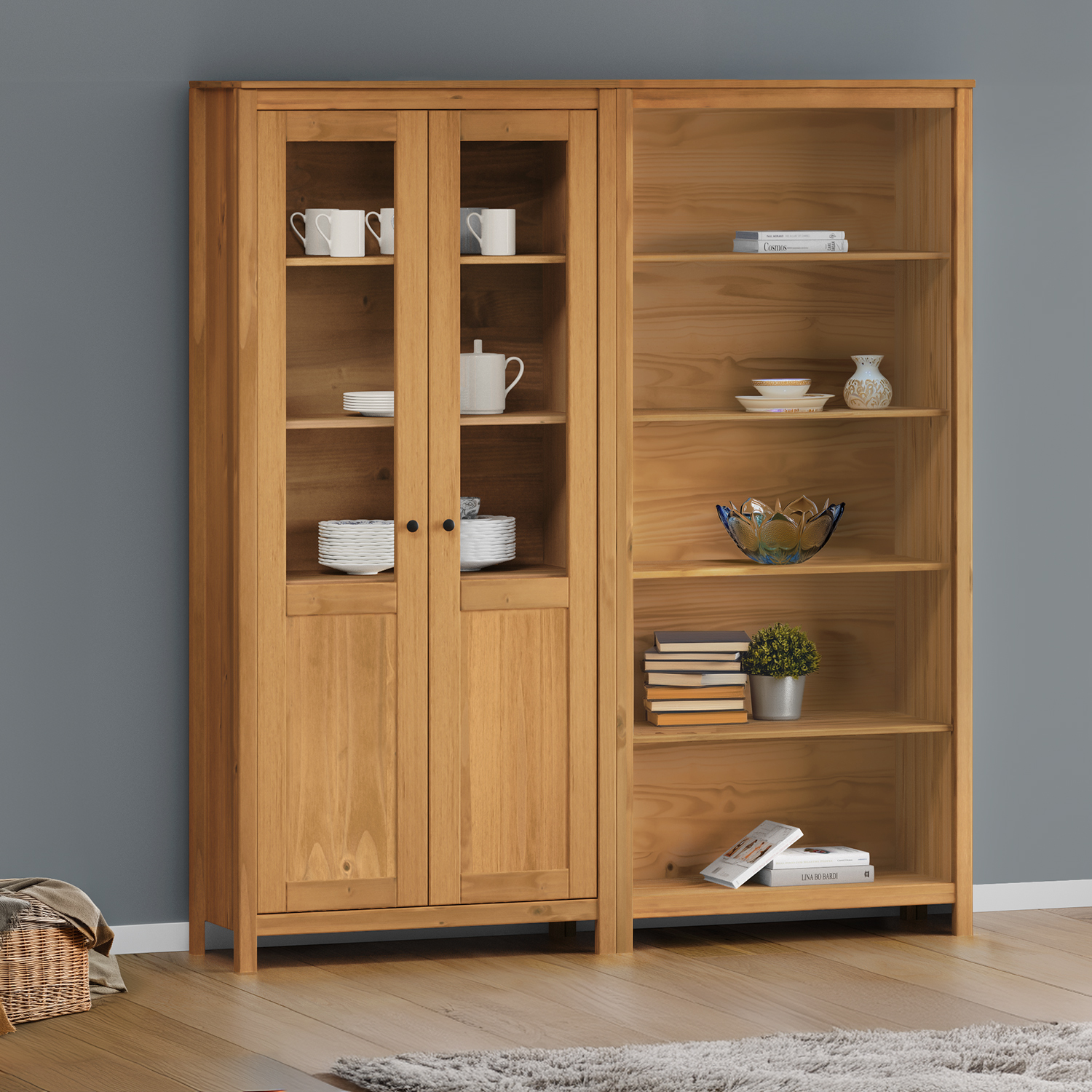 Kód produktu: 8060VNábytek je vyroben z masivu borovice voskované v medovém odstínu. Je vybaven kovovými úchytkami v provedení černěná mosaz. Součástí jsou dvoje prosklené dveře a dvě police. Maximální nosnosti jednotlivých částí jsou uvedeny v návodu k montáži.