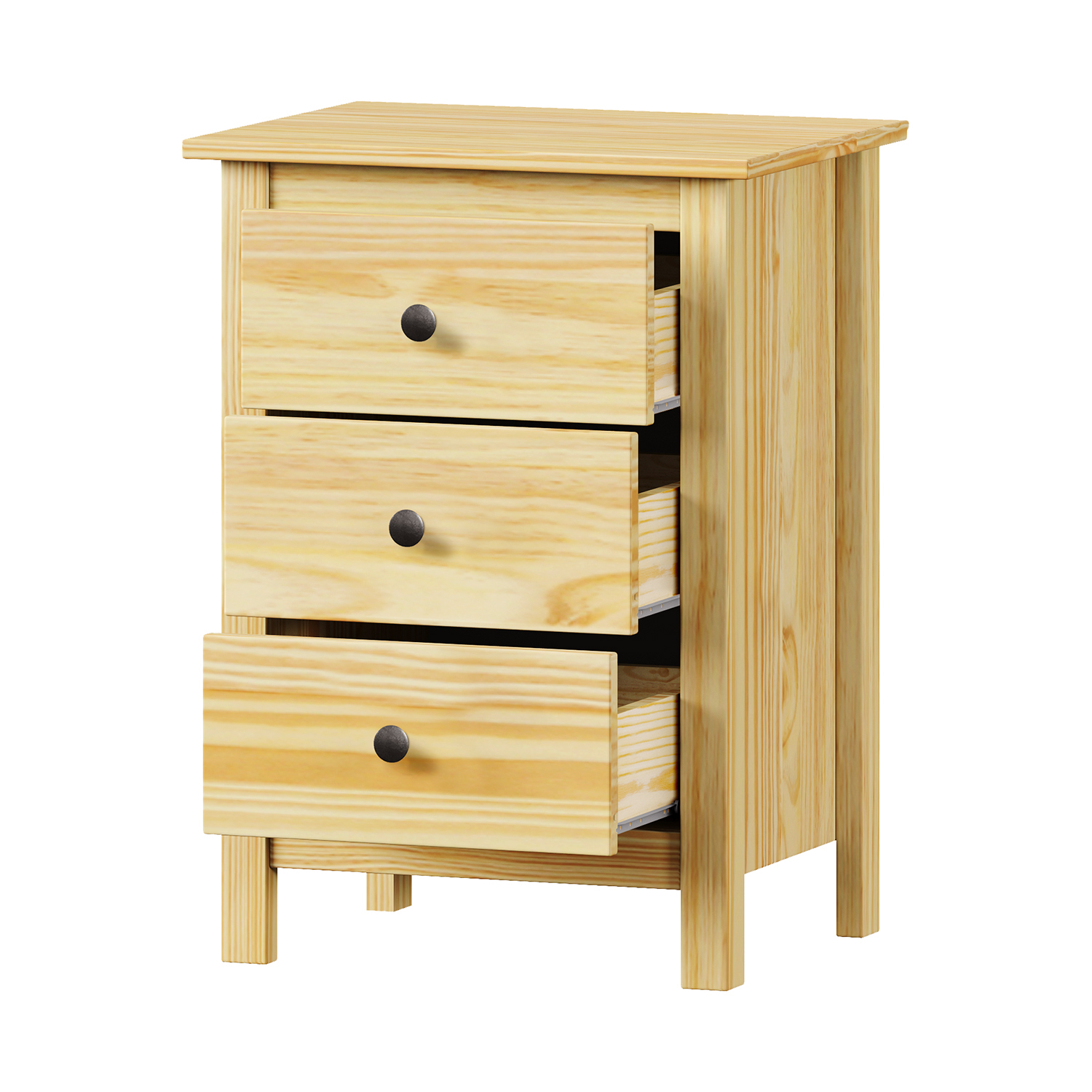 Kód produktu: 8061KMateriál je masiv borovice v lakovaném provedení. Kovové úchytky jsou v barevném provedení černěná mosaz. Má 3 zásuvky s kovovými pojezdy, 3 plné dveře a 2 police. Maximální nosnosti jsou uvedeny v návodu k montáži.
