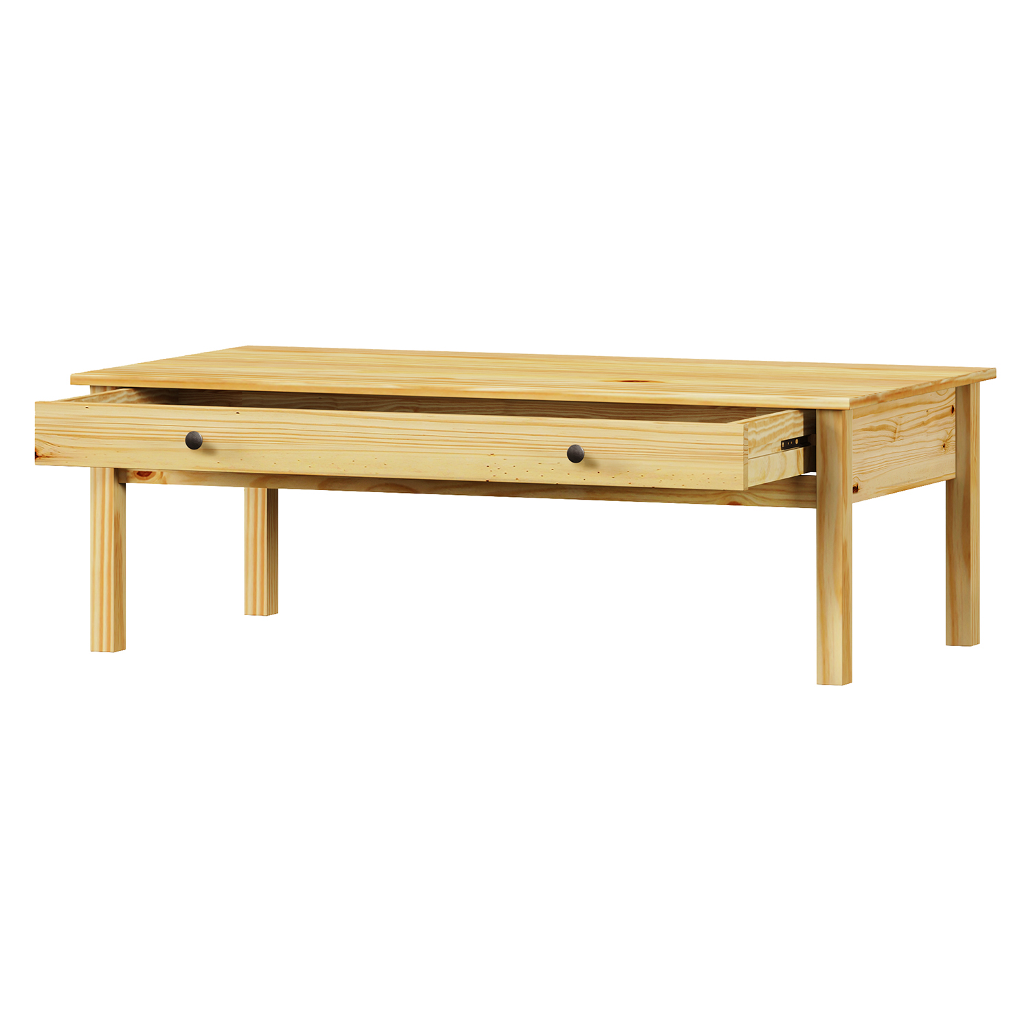 Stolek je vyroben z materiálu masiv borovice v lakovaném provedení a je doplněn kovovými úchytkami v barevném provedení černěná mosaz. Obsahuje širokou zásuvku s kovovými pojezdy.