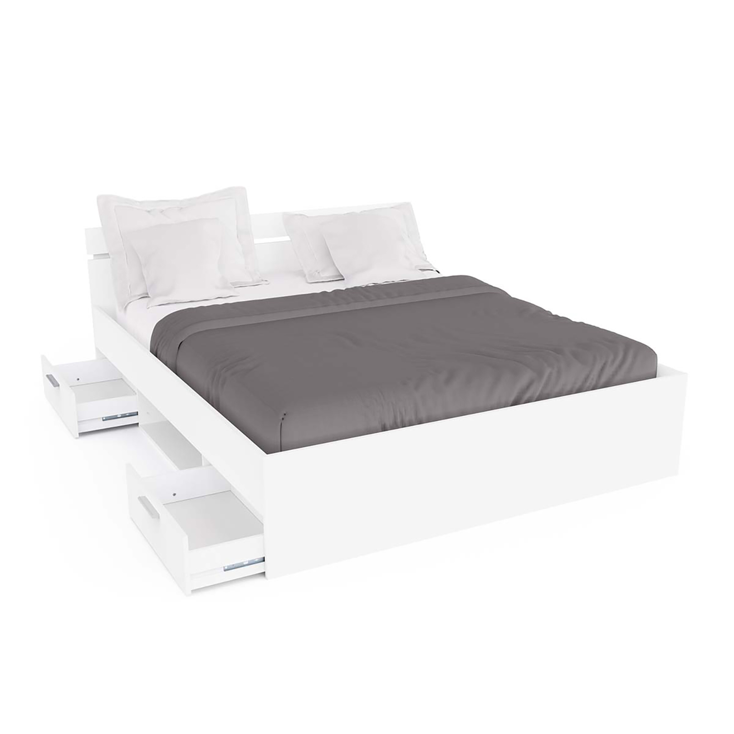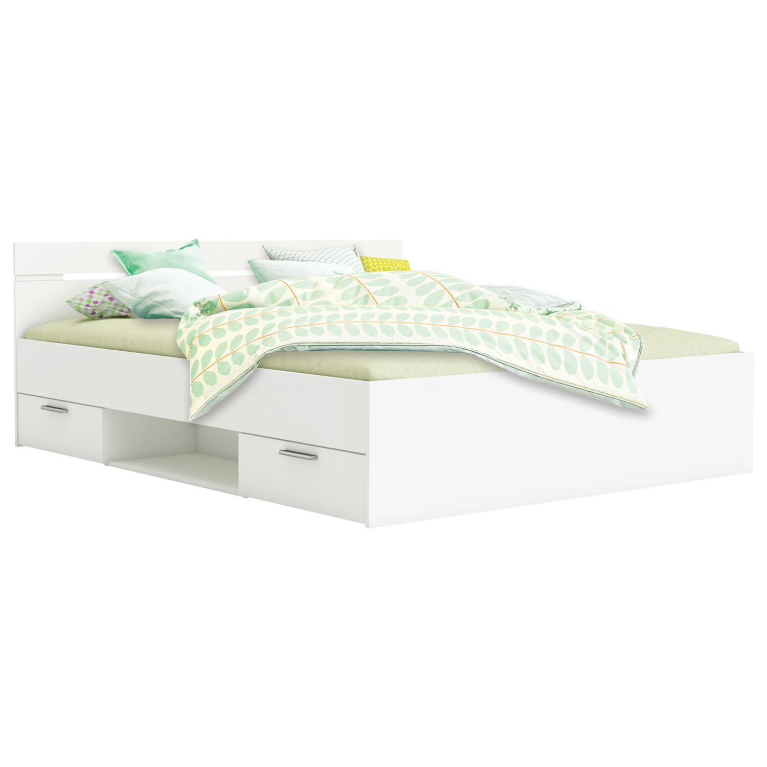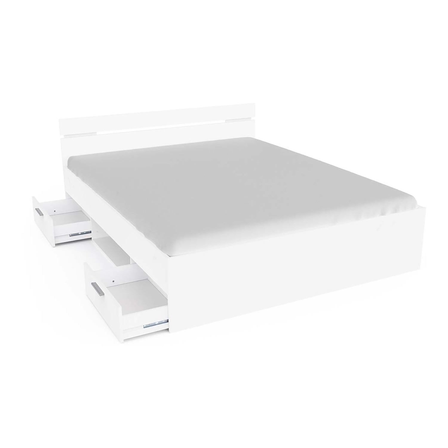 Multifunkční postel 160 × 200 cm MICHIGAN v barevném provedení matná bílá obsahuje dvě úložné zásuvky s kovovými pojezdy, které jsou v ceně, matrace a rošt nejsou v ceně. Doporučený rozměr matrace 160 × 200 cm nebo 2 kusy 80 × 200 cm. K posteli je nutné použít samonosný rošt v rámu 160 × 200 cm.