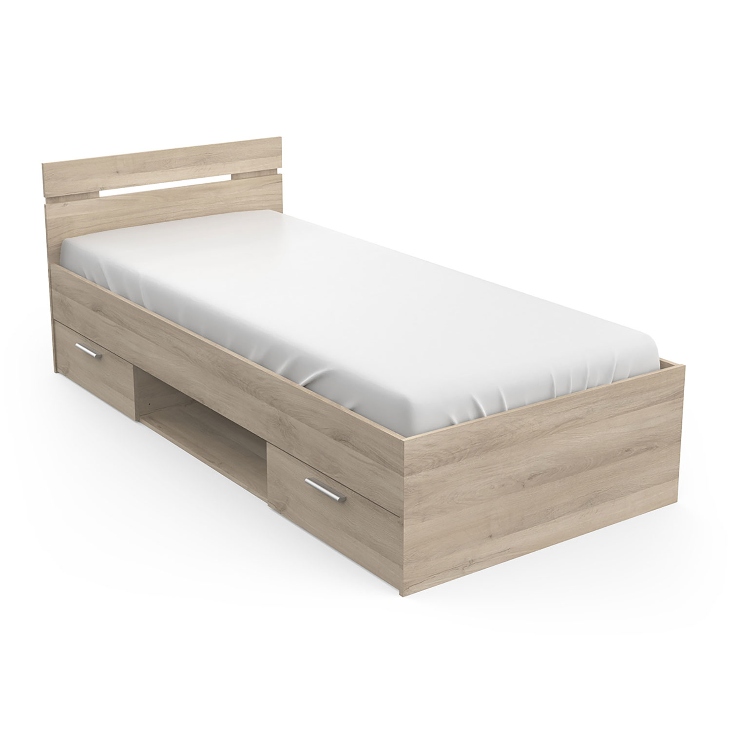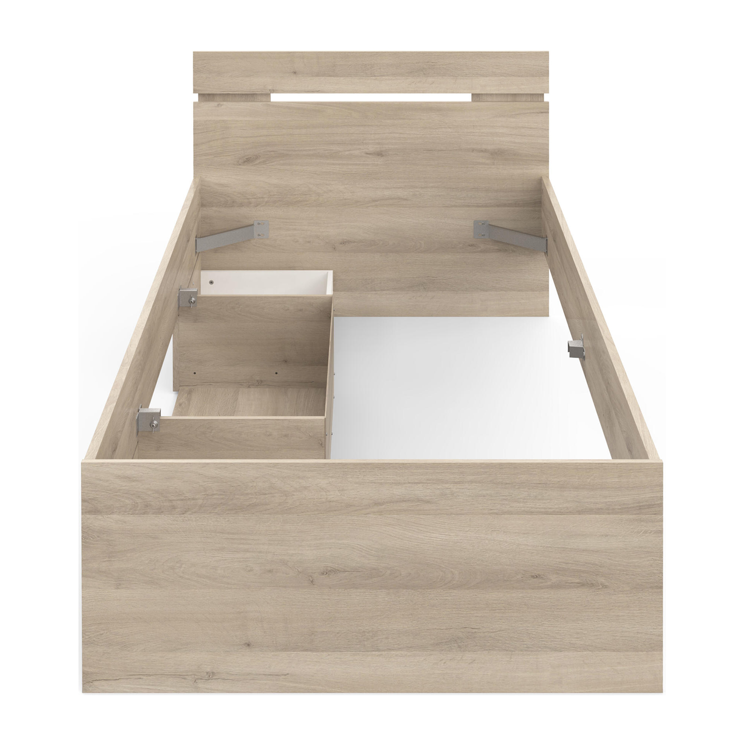 Barevné provedení dub Kronberg. Dvě úložné zásuvky s kovovými pojezdy o rozměrech zásuvky (š/v/h) 56 × 11 × 34 cm. Niky rozměru (š/v/h) 69 × 36 × 26 cm jsou součástí balení spolu se zásuvkami. Matrace a rošt nejsou součástí balení. Doporučený rozměr matrace je 90 × 200 cm. Pro postel je potřeba samonosný rošt v rámu rozměru 90 × 200 cm (typy 7154 nebo 7861). Maximální doporučená nosnost je 100 kg.