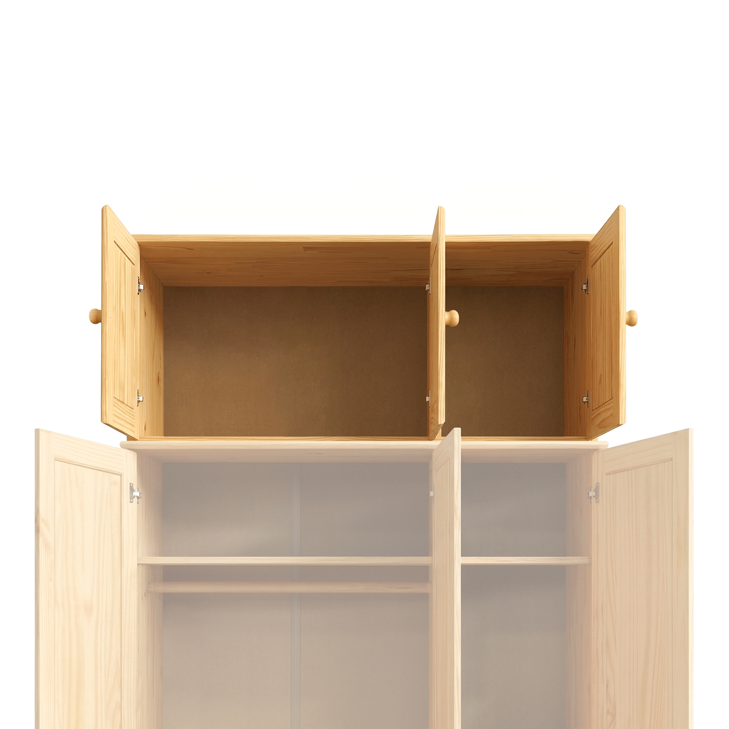 Nástavec 8864 je v provedení masiv borovice lak. Nástavce jsou skvělým řešením, pokud vám dochází prostor ve skříni, ale i v případě, že potřebujete uskladnit sezónní oblečení či uložit ložní prádlo. Nástavec vám ušetří místo v pokoji, v ložnici i v šatně, neváhejte. Nástavec je určen pro skříň 8863 nebo 8851.
