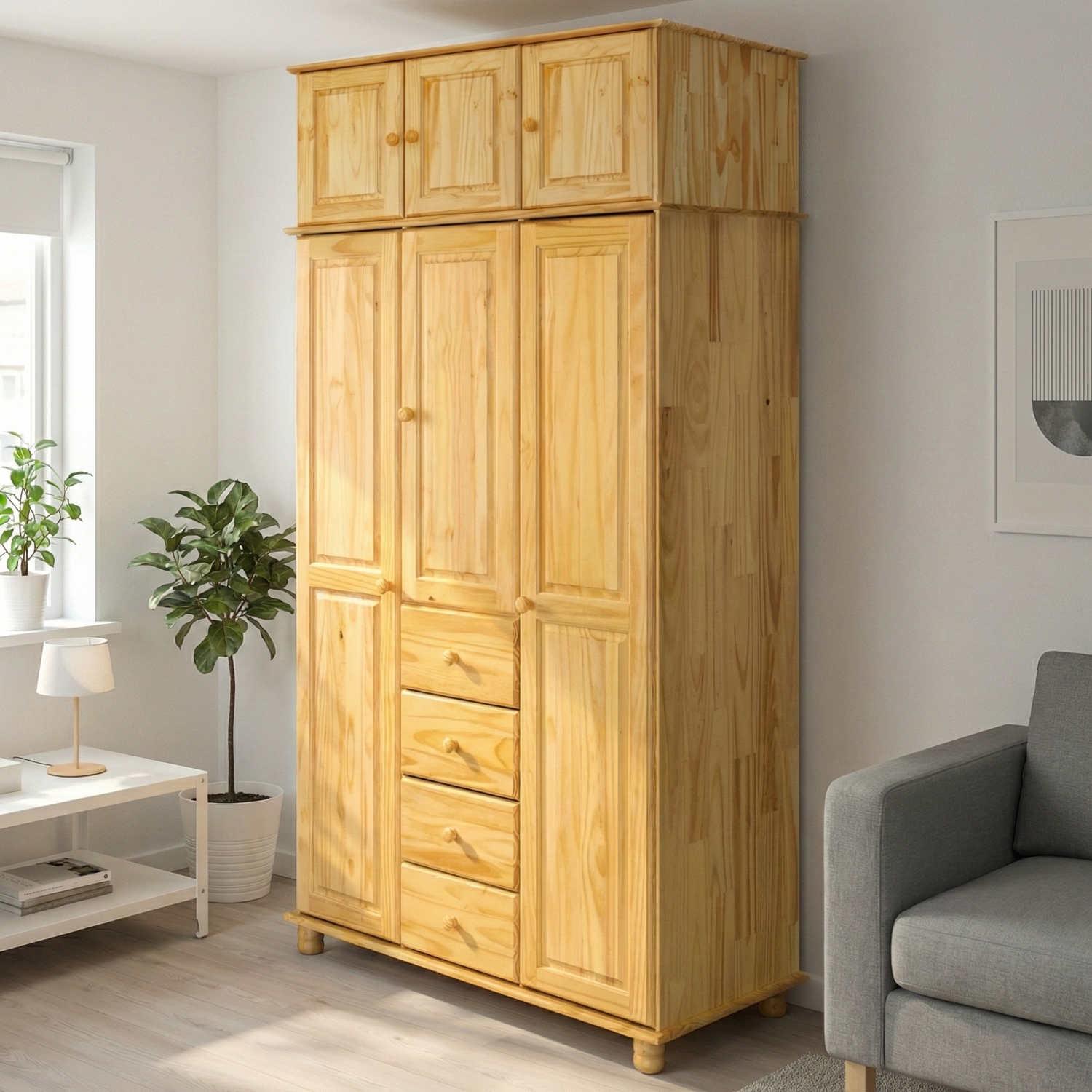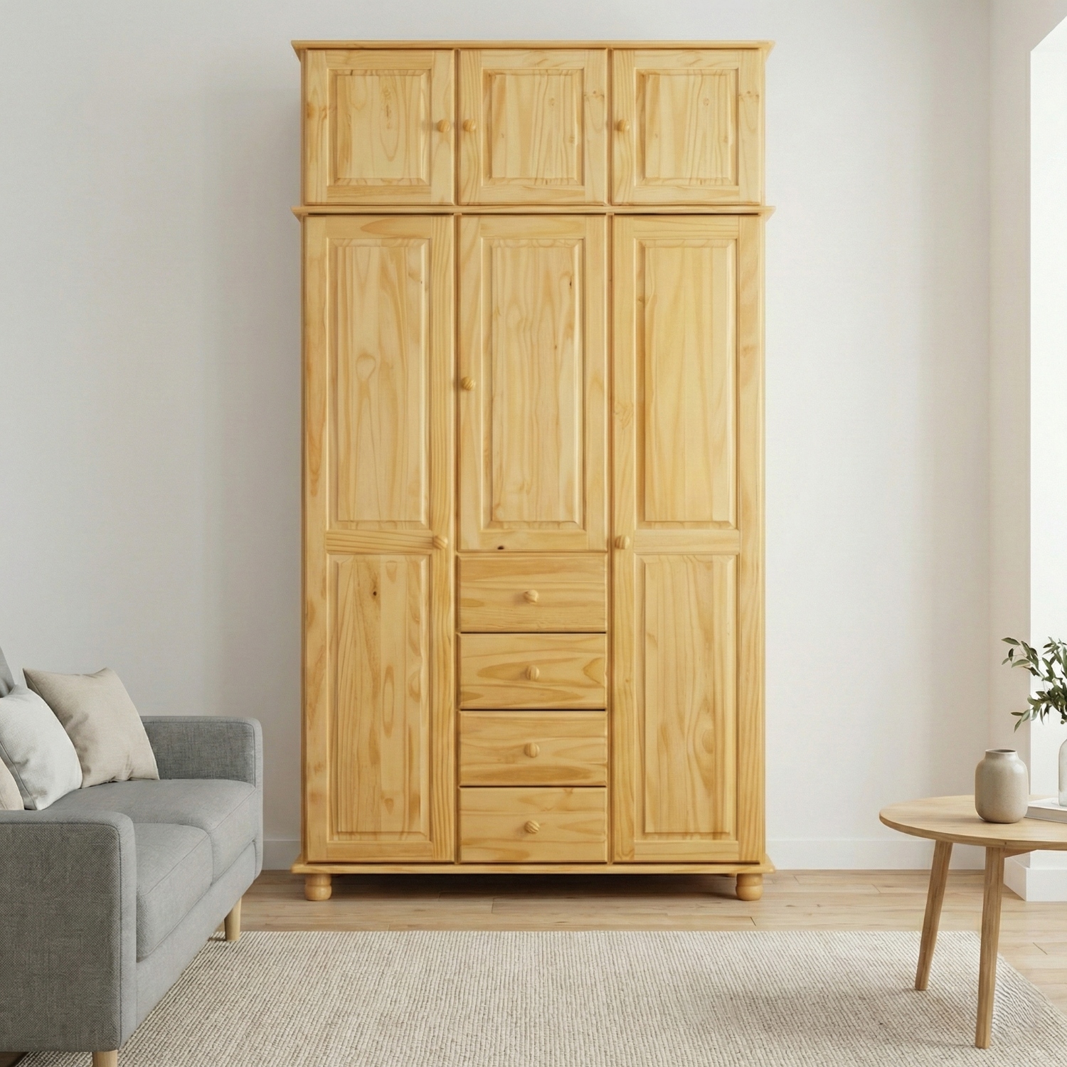 Pokud máte přeplněnou šatní skříň, pak si pořiďte praktický nástavec, ten vám nabídne další prostor pro uložení věcí. Nástavec 8864 lakovaný v provedení masiv borovice je nástavcem na třídveřovou lakovanou skříň 8863 v provedení masiv borovice. Tento nástavec však lze použít i samostatně. Nástavce vám poslouží, když vám dochází místo ve skříni, ale i v případě, že potřebujete uskladnit sezónní oblečení. Nástavce lze využít i na ložní prádlo, deky, ručníky a osušky. Masivní nástavec 8864 je dělený na dva prostory, širší se dvěma dvířky a užší s jedněmi dvířky. Nástavec vám ušetří místo v pokoji či v šatně zařízené masivním nábytkem. Pokud vlastníte masivní třídveřovou lakovanou skříň 8863, pak už nemusíte kupovat další masivní nábytek, ale bude vám stačit tento prostorný masivní nástavec.