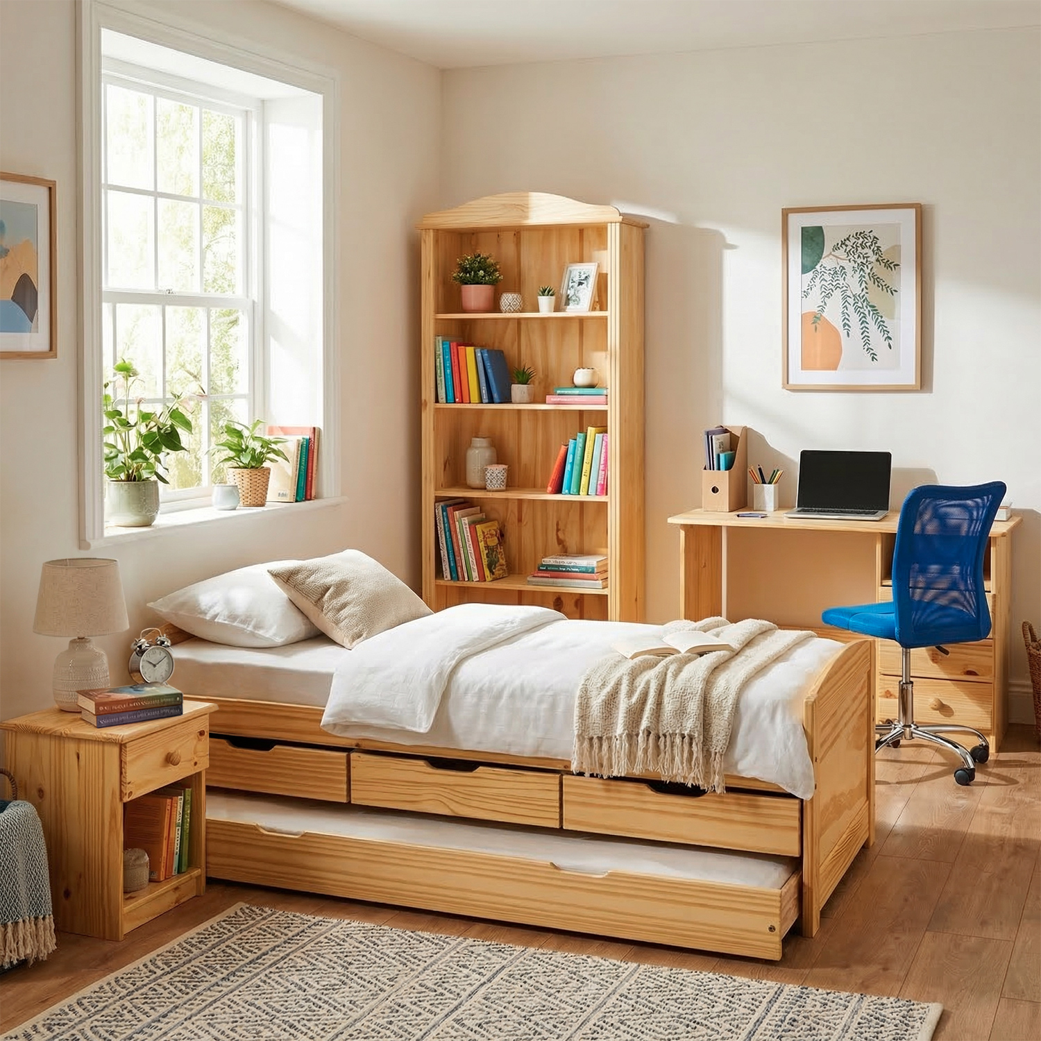 Masivní pracovní stůl je vhodný do pracovny, dětského pokoje i studentského pokoje. PC stůl 8844 lakovaný v provedení masiv borovice, s montáží zásuvek na pravou stanu, vám nezabere příliš velký prostor, postavíte ho do rohu místnosti. Prostorné zásuvky s kovovými pojezdy uschovají všechny důležité papíry, do police pod deskou stolu odložíte rozpracované dokumenty. Na plochu stolu postavíte jako notebook, tak obrazovku stolního počítače. Masivní stůl v lakovaném provedení v přírodních barvách zapadne především do prostor vybavených nábytkem z masivu. Kvalitní stůl vám bude sloužit od dětství až do dospělosti. PC stůl ocení především studenti či lidé pracující na počítači. Ke stolu lze přisunout jakoukoliv kancelářskou židli. Pro každodenní práci je tento masivní stůl nepostradatelný. Pracujte u prakticky řešeného stolu.