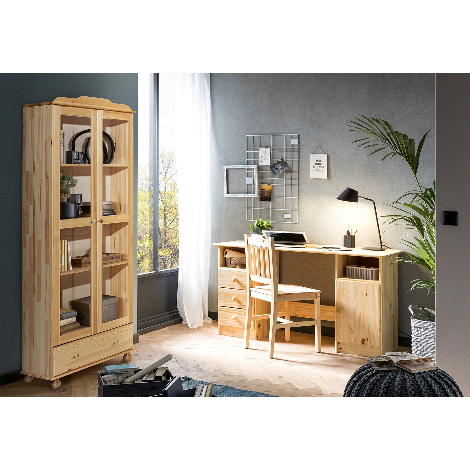 PC stůl 8847 lakovaný v provedení masiv borovice je vhodný do pracovny i studentského pokoje. PC stůl obsahuje 3 zásuvky s kovovými pojezdy a skříňku s dvířky. Nad zásuvkami a skříňkou je prostor pro odložení drobných věcí. PC stůl je vhodný do pokoje s masivním nábytkem. Bez výsuvu pro klávesnici. Ke stolu možno dokoupit výsuvnou desku na klávesnici 8840.