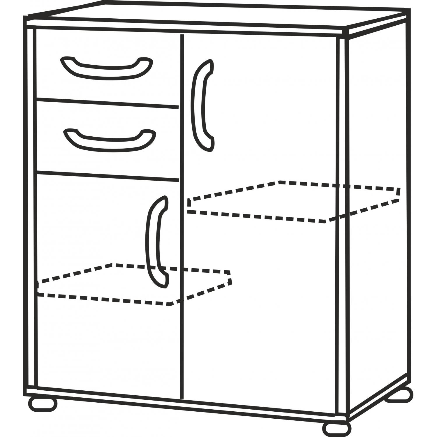 Komoda 1504A v provedení dub se bude hodit k uložení prádla i dokumentů. Komoda obsahuje malá a velká dvířka, za kterými se nacházejí 2 police z toho 1 variabilní a 2 zásuvky s hloubkou 30 cm. Jednoduchá komoda pomůže prostor i pěkně oživit, na její plochu umístíte dekorace, fotografie a květiny.
