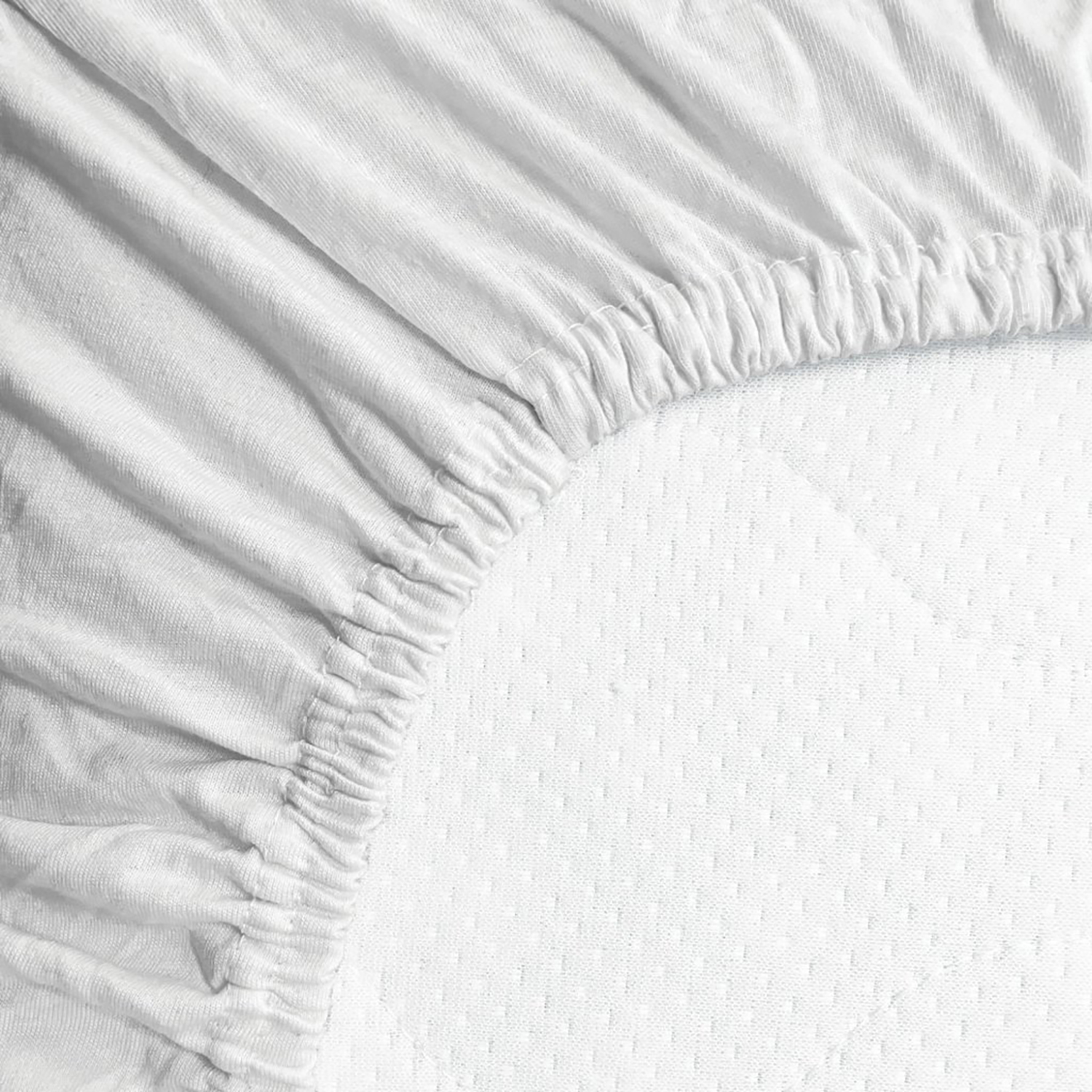Kód produktu: B20090211Materiál prostěradla obsahuje 95 % bavlny a 5 % elastanu (Lycra) a má gramáž 185 g/m². Prostěradlo je dostupné v bílé barvě. Je odolné, elastické a stálobarevné, obšité gumou. Je vhodné pro matrace do výšky 35 cm a lze jej prát při teplotě do 40 °C.
