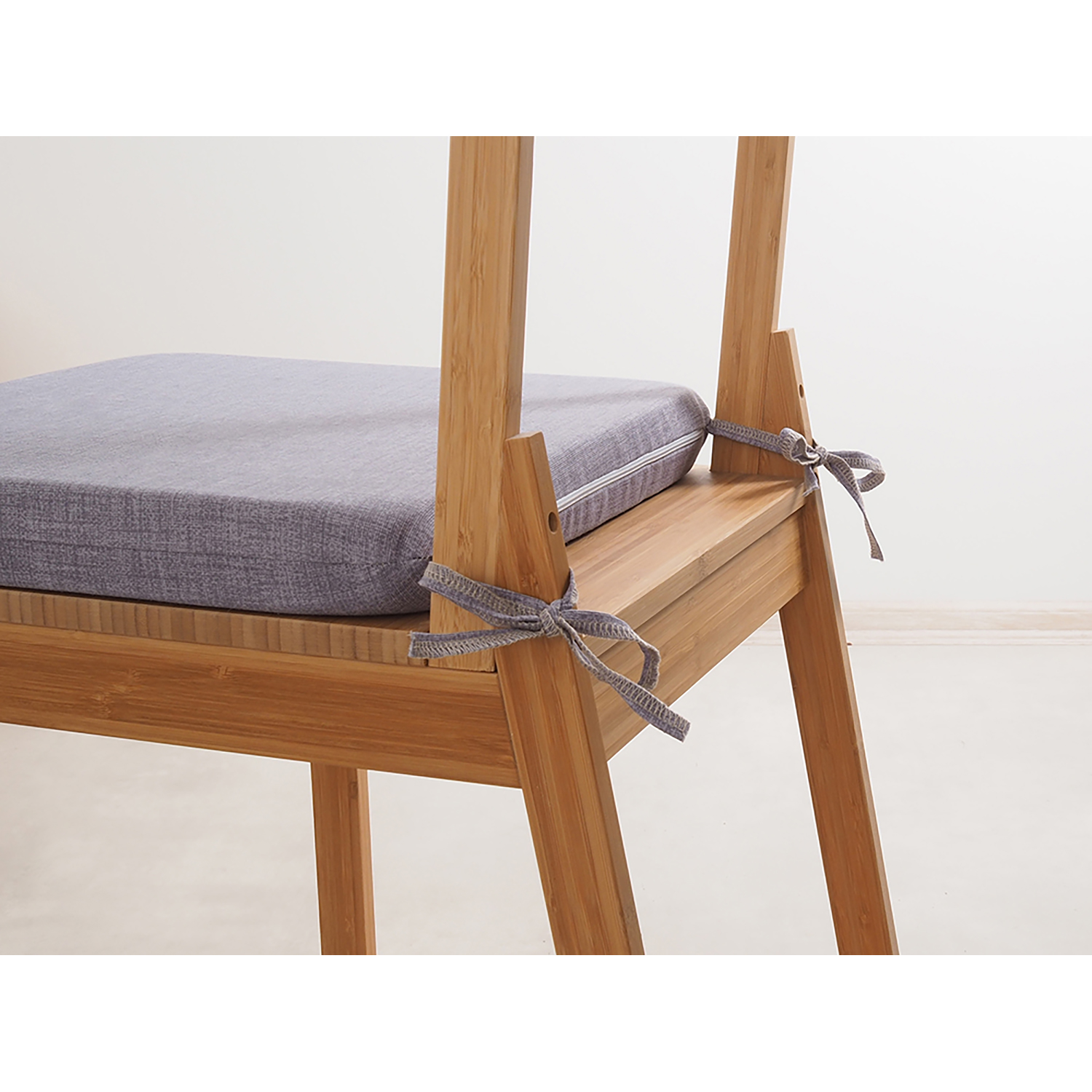 Materiál potahu je ze 70% bavlna + 30% polyester. Barevné provedení je šedé. V rozích jsou všité tkaničky pro připevnění. Potah je na zip, je snímatelný a pratelný do 30 °C . Materiál výplně je ze 100% polyester. Výška výplně je 4 cm.