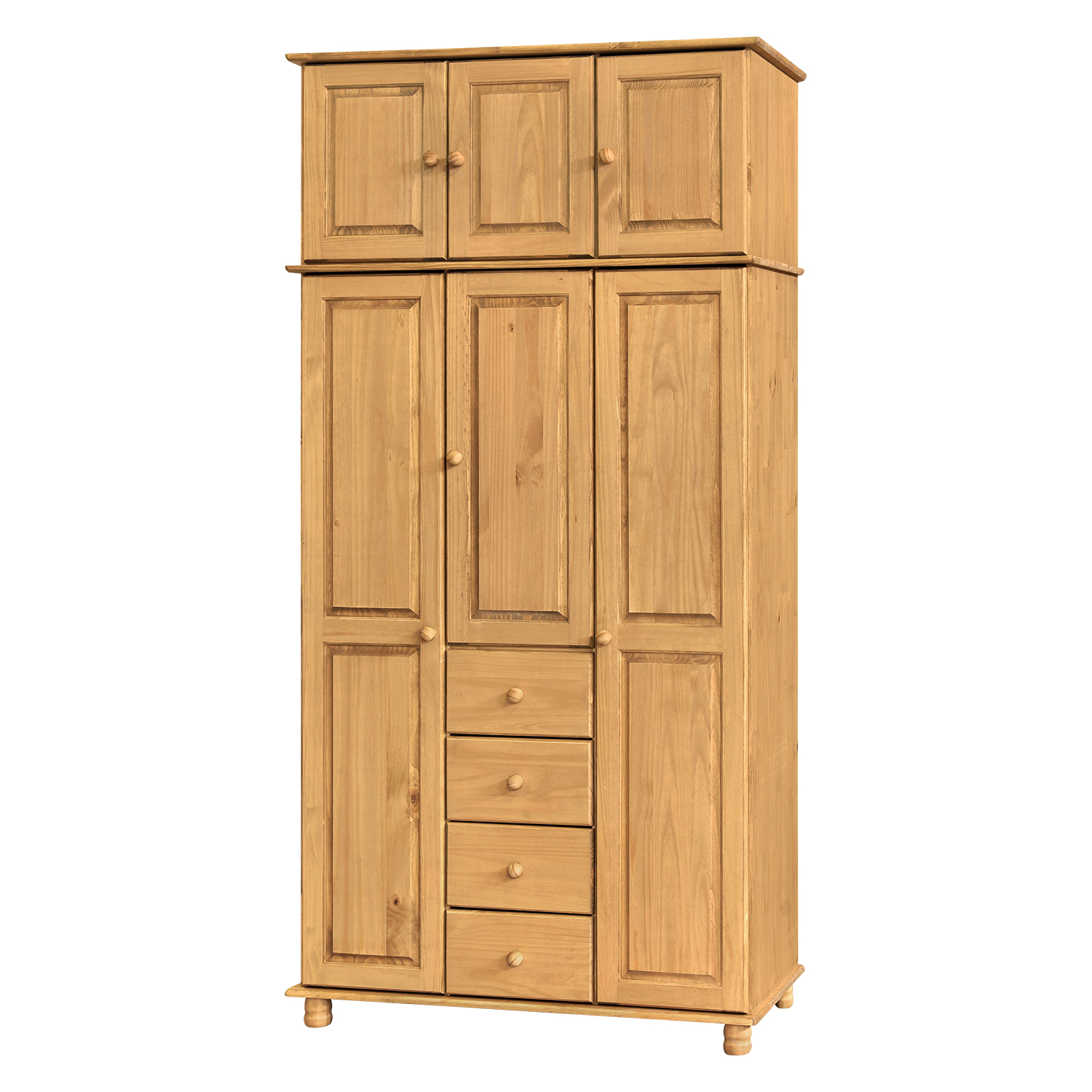 Kód produktu: 8860VMateriál je masiv borovice. Je voskovaná v medovém odstínu. V levé části je šatní tyč, v pravé části jsou 3 police, v dolní části jsou 2 zásuvky s kovovými pojezdy. Je možné dokoupit nástavec 8861V.