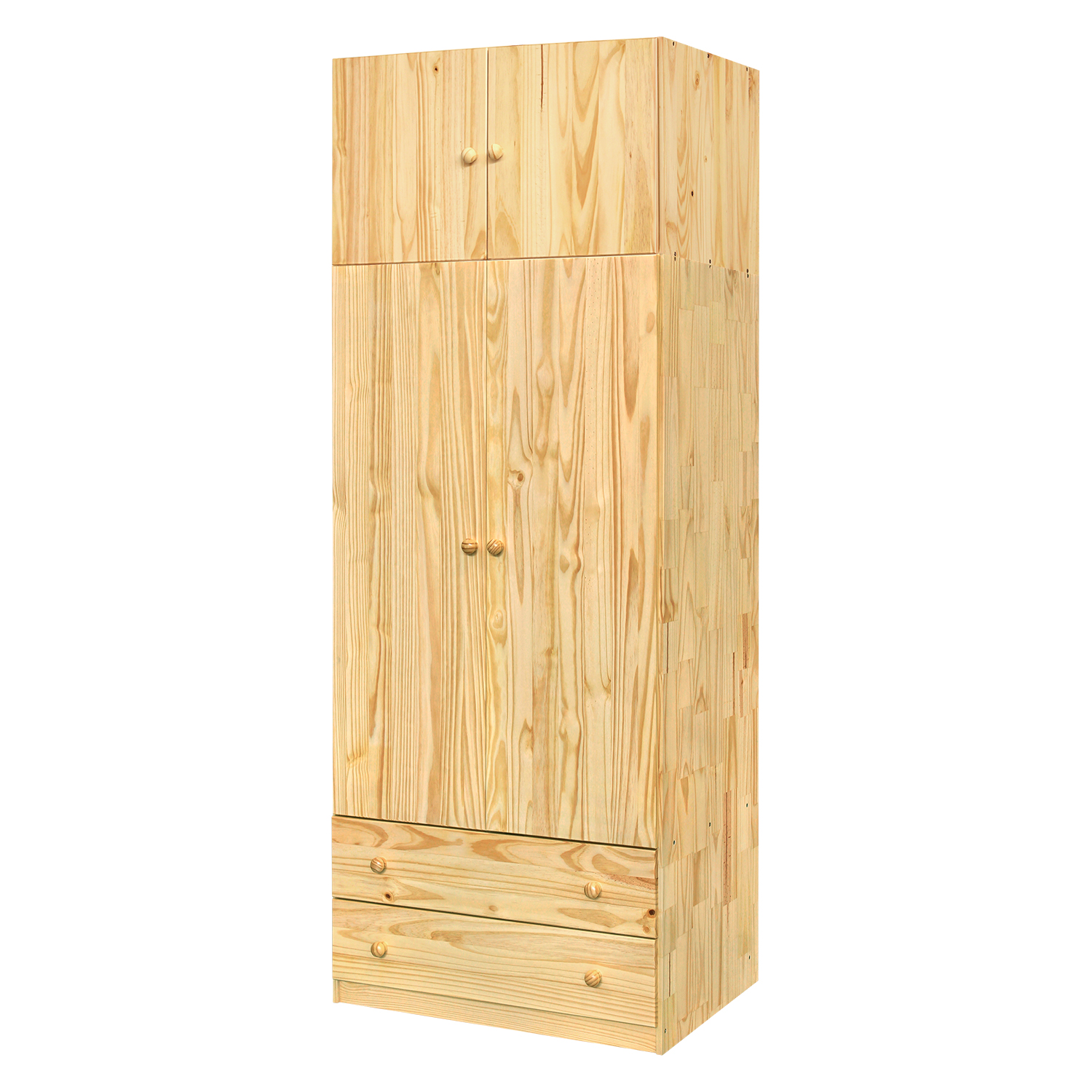 Skříň se 2 zásuvkami 865 lakovaná v provedení masiv borovice se bude hodit do všech prostorů zařízených masivním nábytkem. Šatní skříň je vybavena šatní tyčí a obsahuje dvě široké zásuvky s kovovými pojezdy. Na skříň je možné umístit praktický masivní nástavec 811. Masivní skříň umístíte do pokoje i šatny.