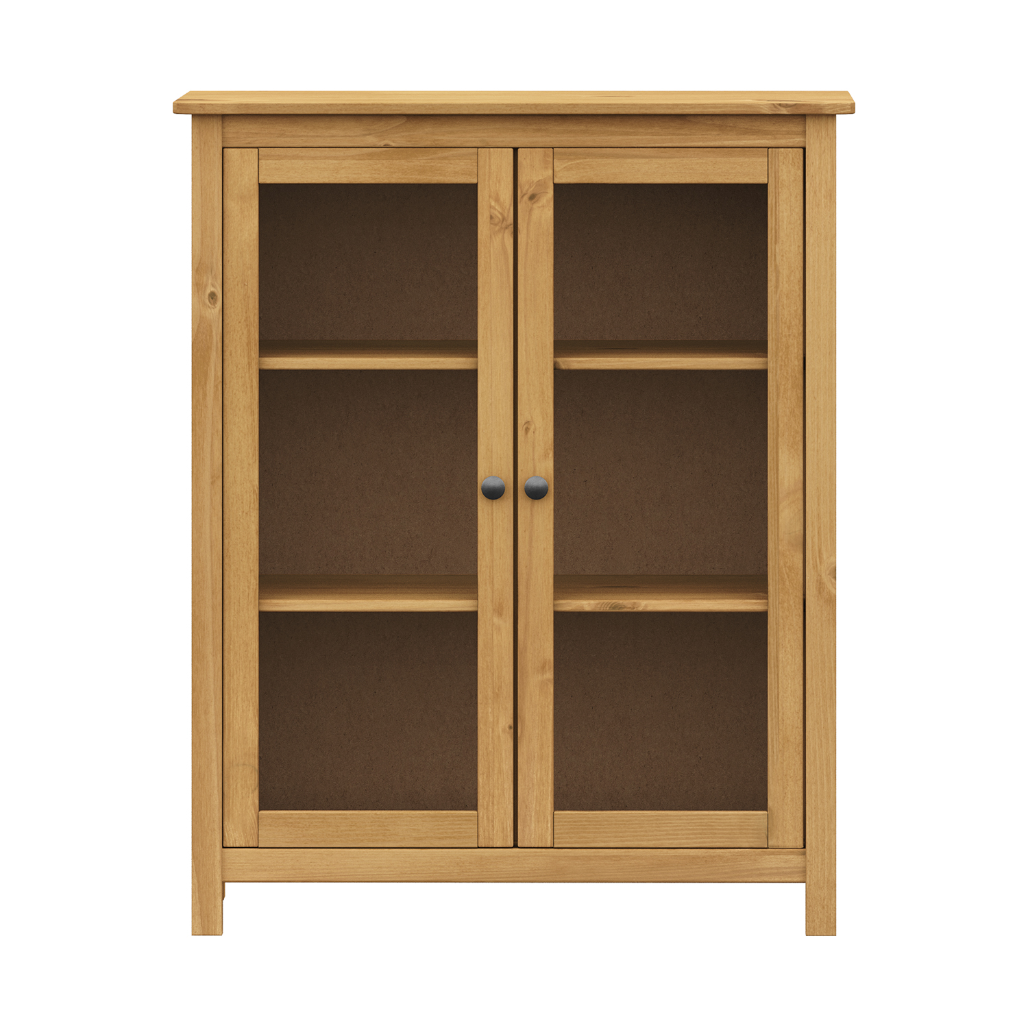 Kód produktu: 8077VVitrína je vyrobena z masivu borovice s voskovaným medovým odstínem. Tento nábytek je doplněn o kovové úchytky v provedení černěné mosazi. Obsahuje dvoje částečně prosklené dveře a čtyři police.