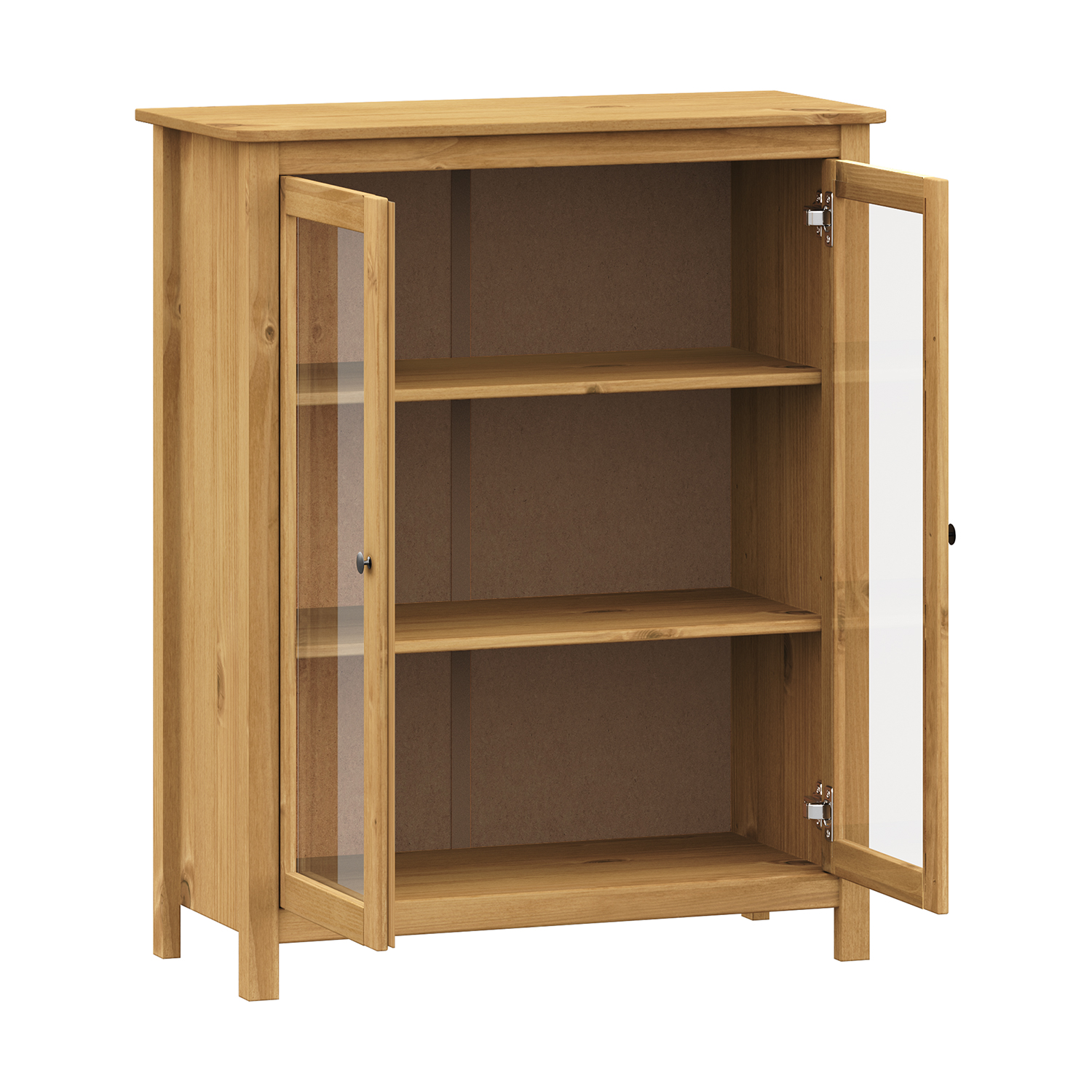 Kód produktu: 8070VMateriálem je masiv borovice s voskovaným medovým odstínem. Nábytek je vybaven kovovými úchytkami v provedení mosazi. Obsahuje 2 prosklené dveře a 1 polici. Je možné dokoupit nástavec příborníku 8095V, který je kompatibilní s touto skříní.